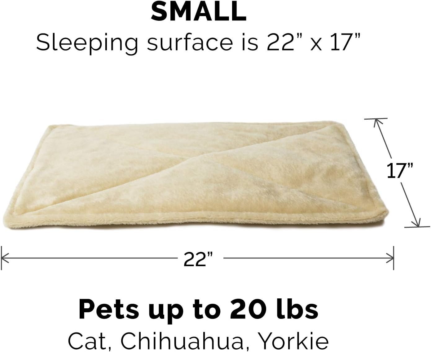 Self-Warming Cat Bed for Indoor Cats & Small Dogs, Washable & Reflects Body Heat – Quilted Faux Fur Reflective Bed Mat – Cream, Small
